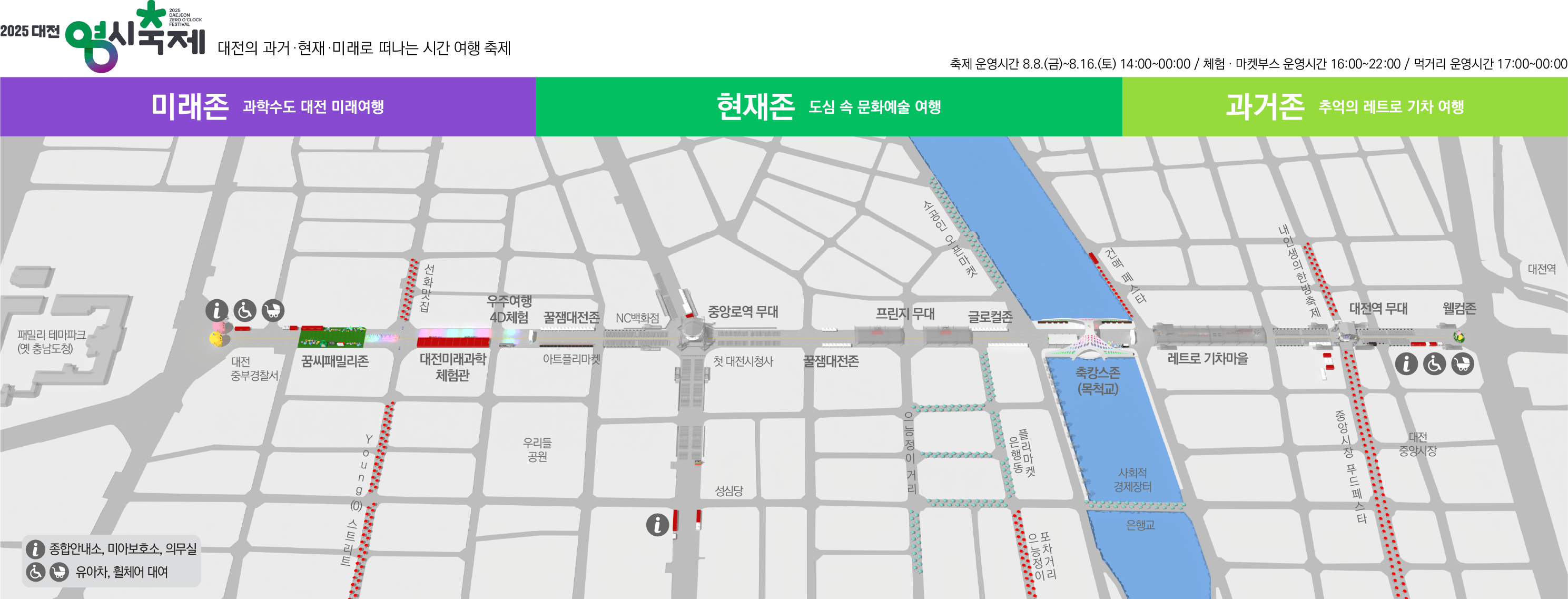 - 현재존 : 메인 콘서트, 거리 퍼레이드, 버스킹